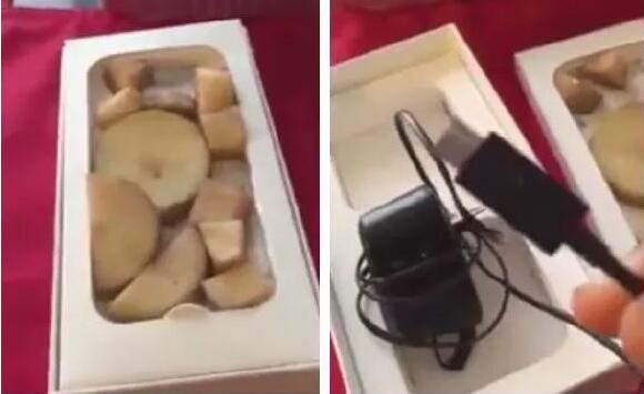 她在確認手機一切正常之后,就買下了這部手機。但是回家后她打開包裝卻發現,盒子里沒有iPhone 6,只有11塊已經變質的土豆……