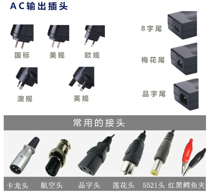 專業生產:2.5-248W 鋰電池充電器,電源適配器,電池組充電器,電動工具充電器,電動車充電器,平衡車充電器,獨輪車充電器,滑板車充電器,動力電池充電器,蓄電池充電器等等;參數有:4.2V系列、5V系列、7.3V系列、8.4V系列、9V系列、12V系列、12.6V系列、13.8V系列、14.4V系列、14.6V系列、15V系列、16.8V系列、17.2V系列、18V系列、19V系列、21V系列、25.2V系列、28.8V系列、29.2V系列、29.4V系列、33.6V系列、37.8V系列、42V系列、43.8V系列、48V系列、50.4V系列、54.6V系列、57.6V系列、58.4V系列、58.8V系列、63V系列、67.2V、71.4V系列、72V系列、84V系列等,產品通過CCC GS UL CE FCC PSE KC SAA PSB LVD CB RoHS等認證,最大做到248W